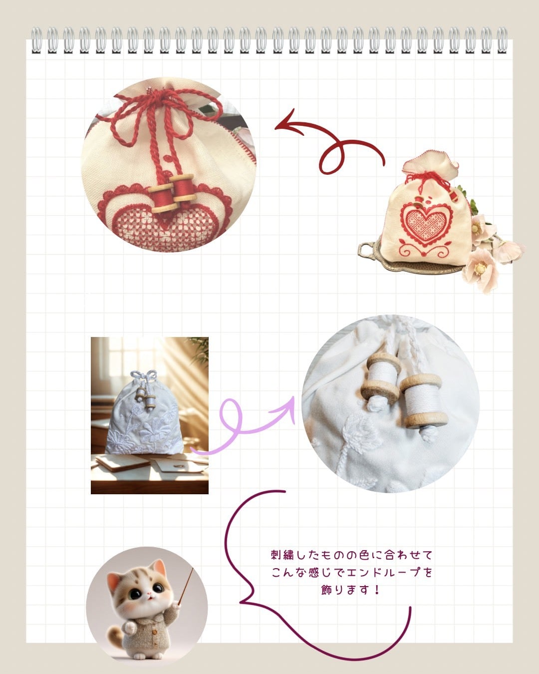 糸巻mini丸 ー 刺繍に合った色のエンドループを ー